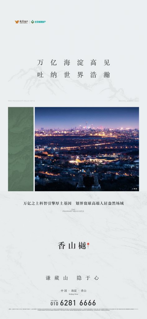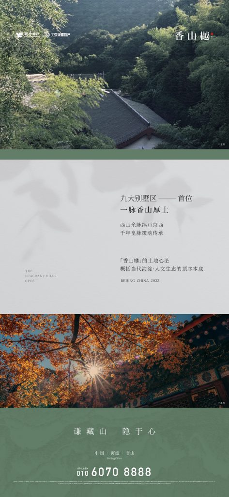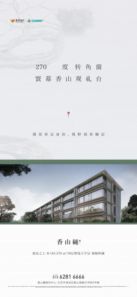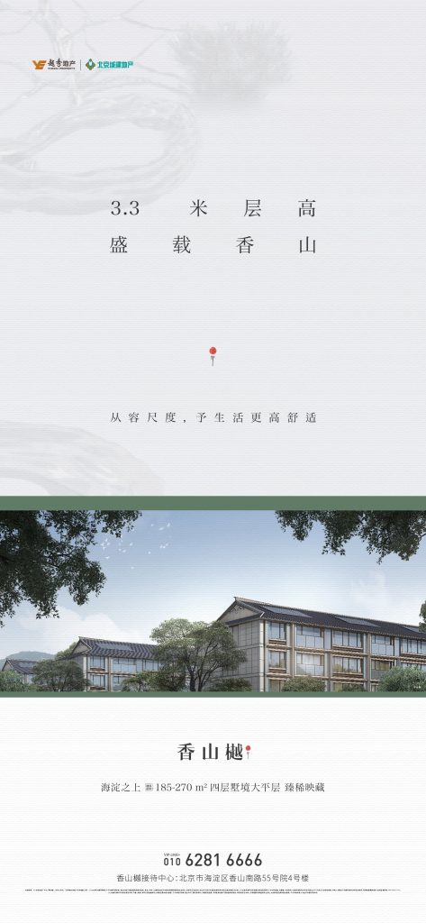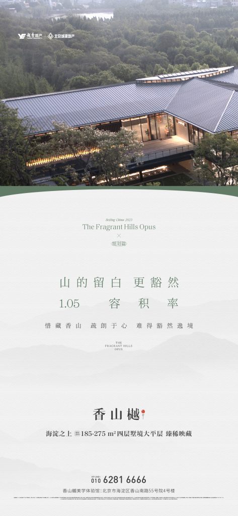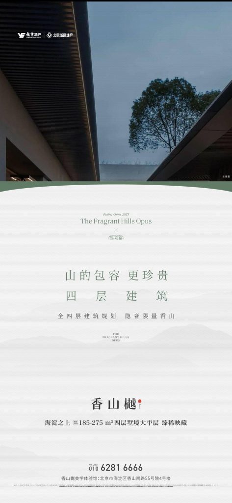 中国现象级隐奢豪宅香山樾,为越秀地产、北京城建地产双国企联袂,于北京海淀香山别墅区打造的顶阶产品系“樾”系代表作。项目总建面约8.9万㎡, 容积率仅1.05,为近年海淀香山难得一见的低密豪宅社区。全四层规划,仅12米建筑高度,建面约185-275㎡墅境大平层,立序当代隐奢豪宅范本。作为当代隐奢豪宅的中国坐标,先后荣膺2023全国十大作品,2024海淀年度销冠、北京商品房销售年度TOP2。